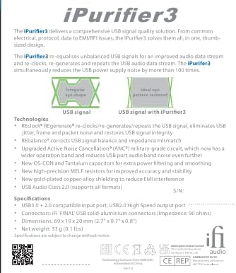 iFi iPurifier3 USB Audio and Data Signal Filter/Purifier (USB Male Type B